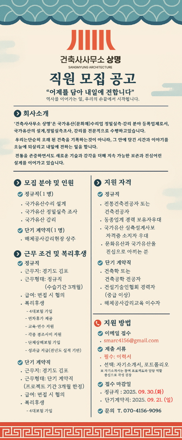 국가유산 설계, 감리, 실측조사 등 경력자 우대
